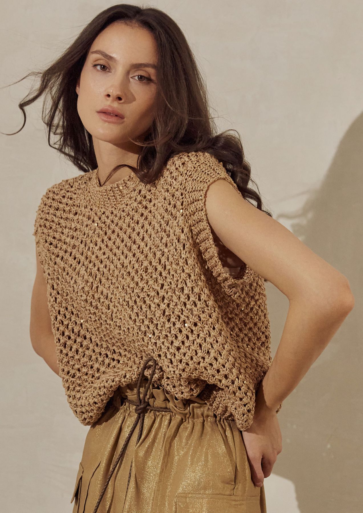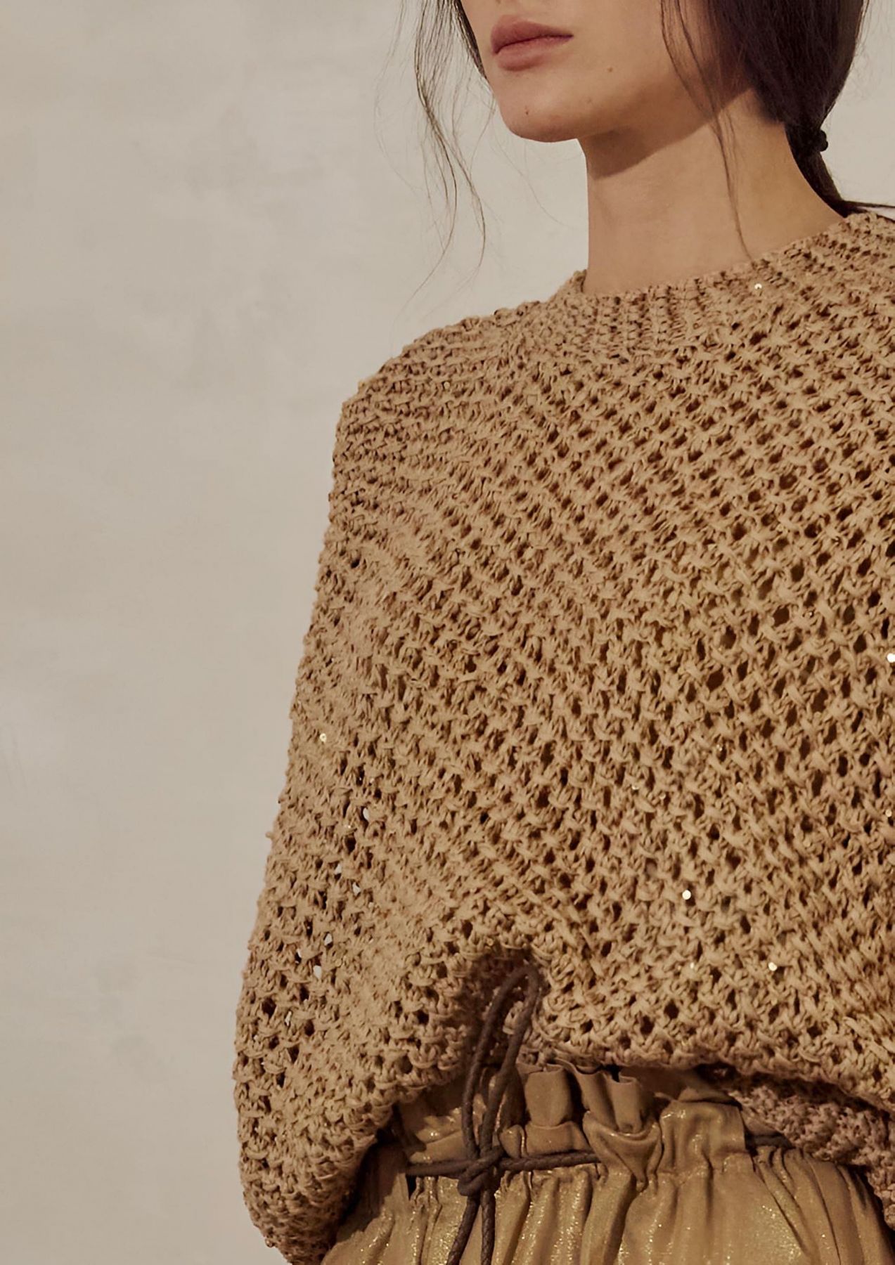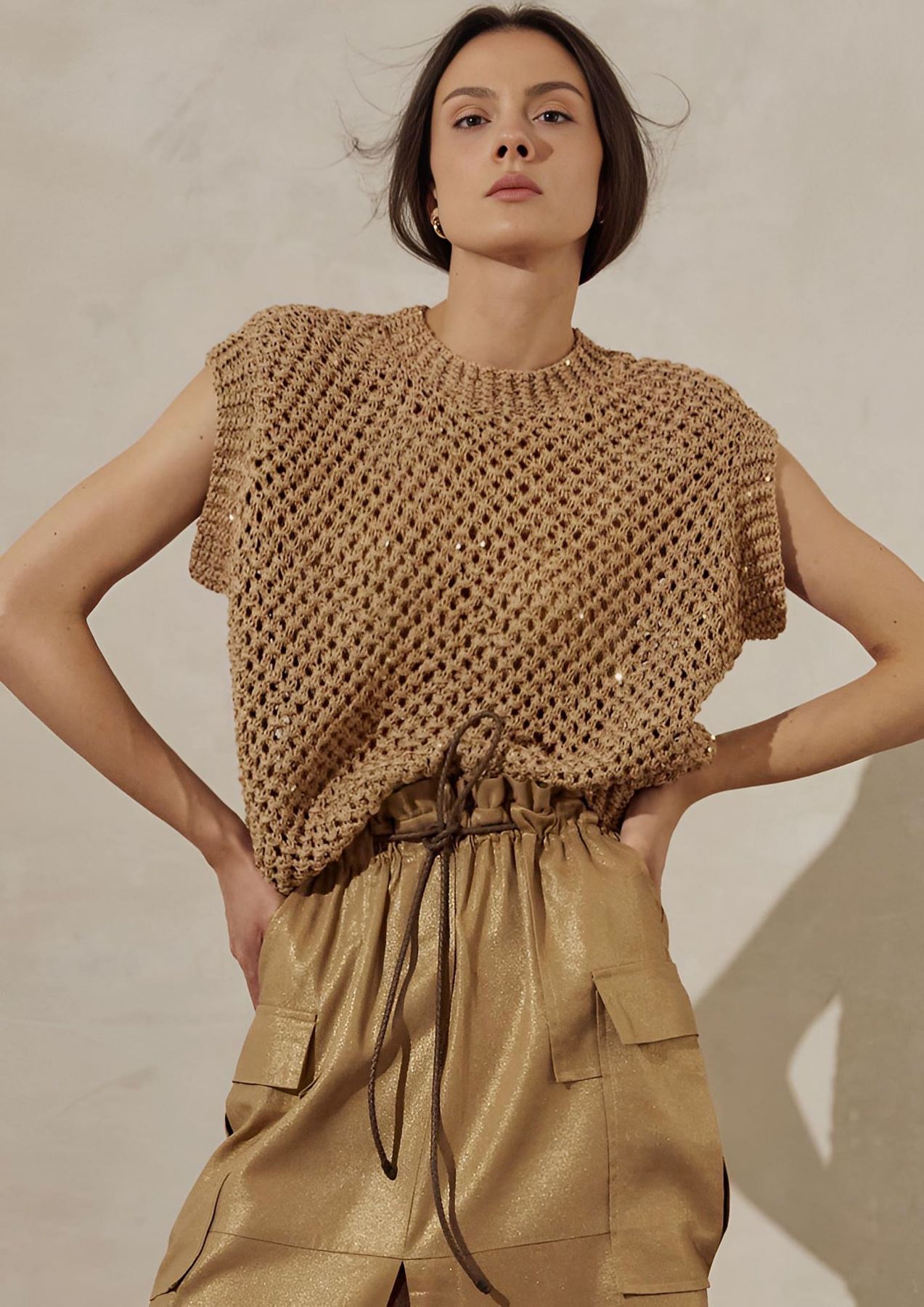 Вязаный золотистый джемпер-сетка с пайетками из хлопка