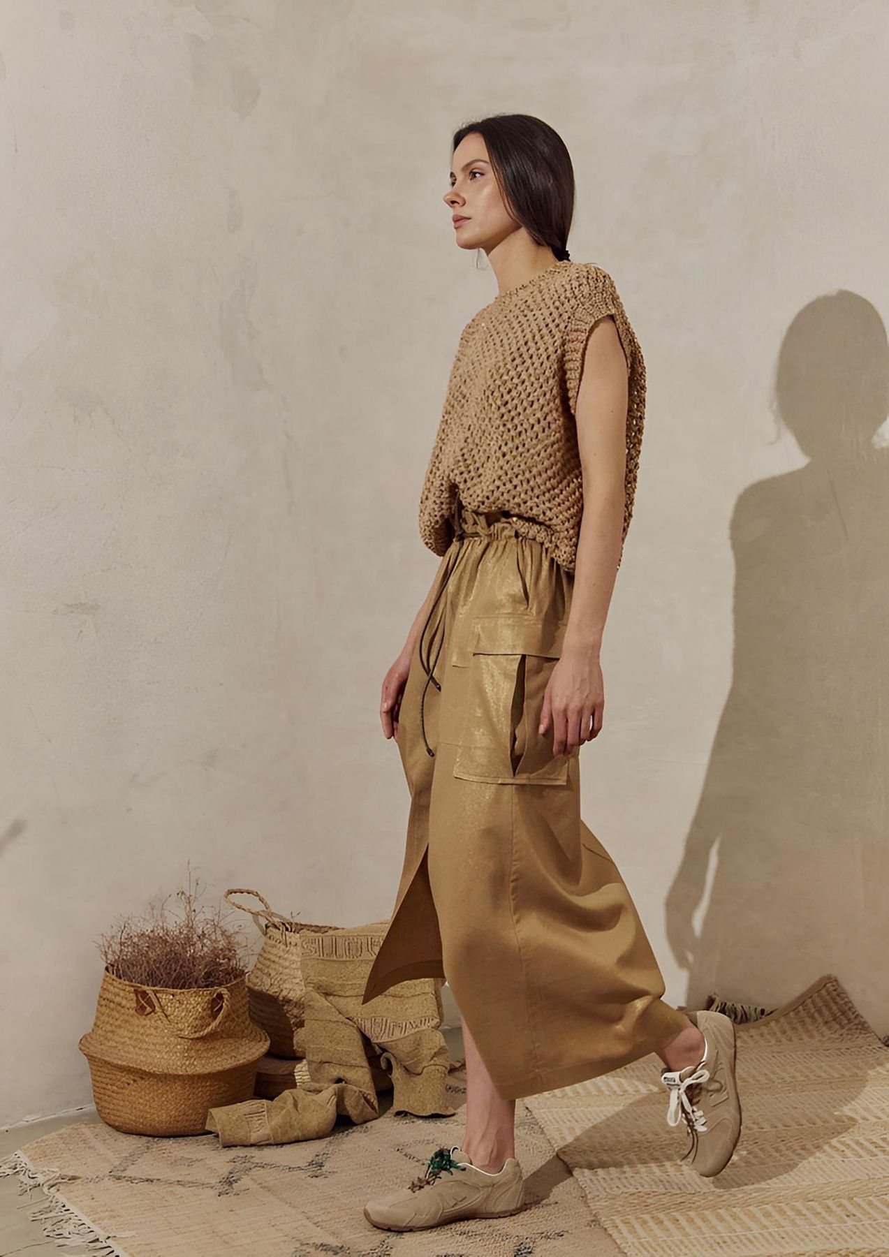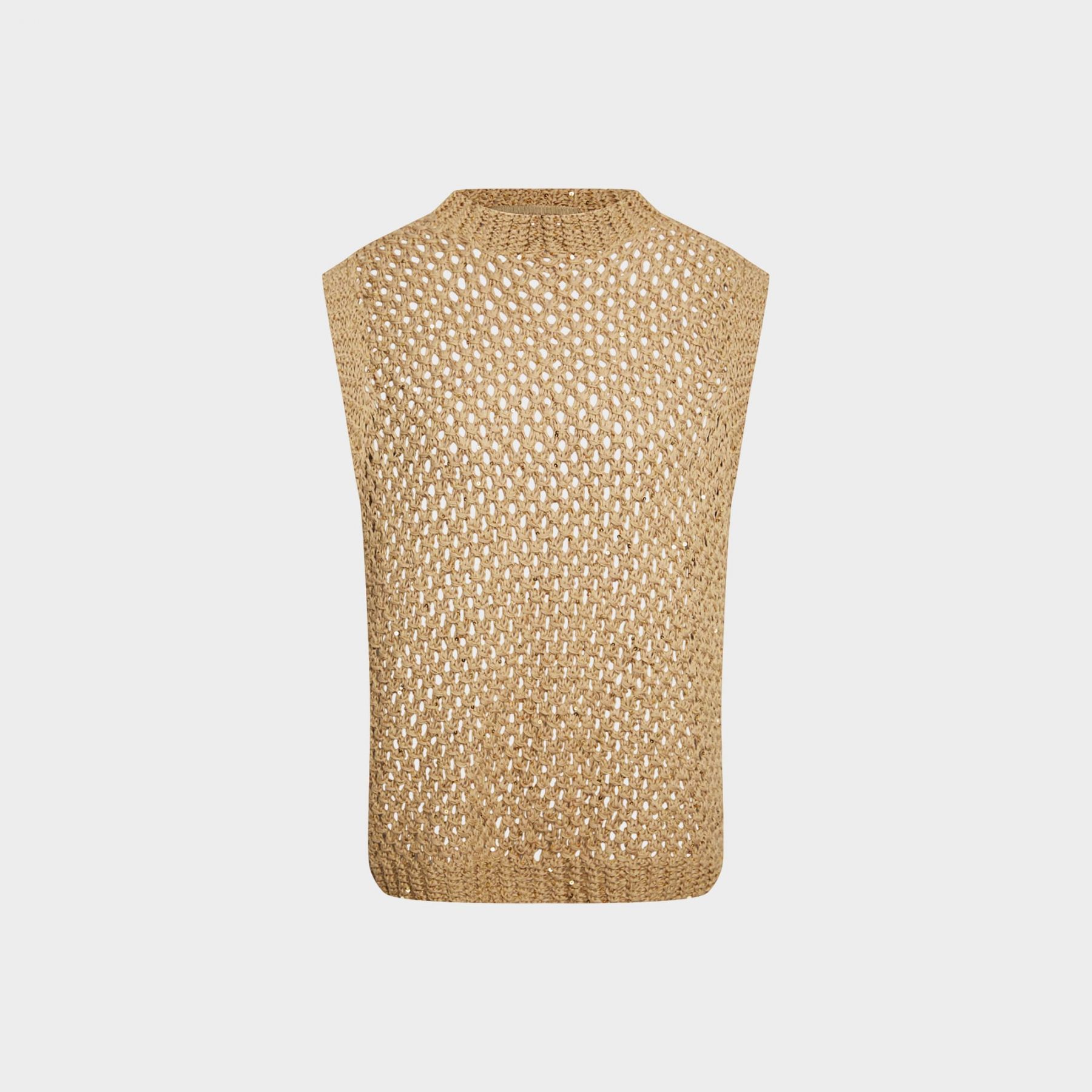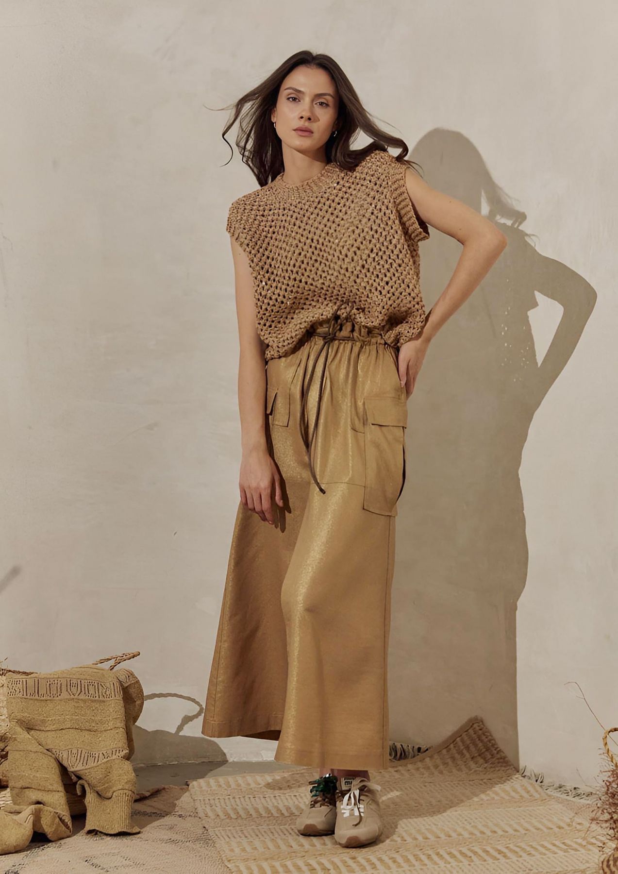 Вязаный золотистый джемпер-сетка с пайетками из хлопка