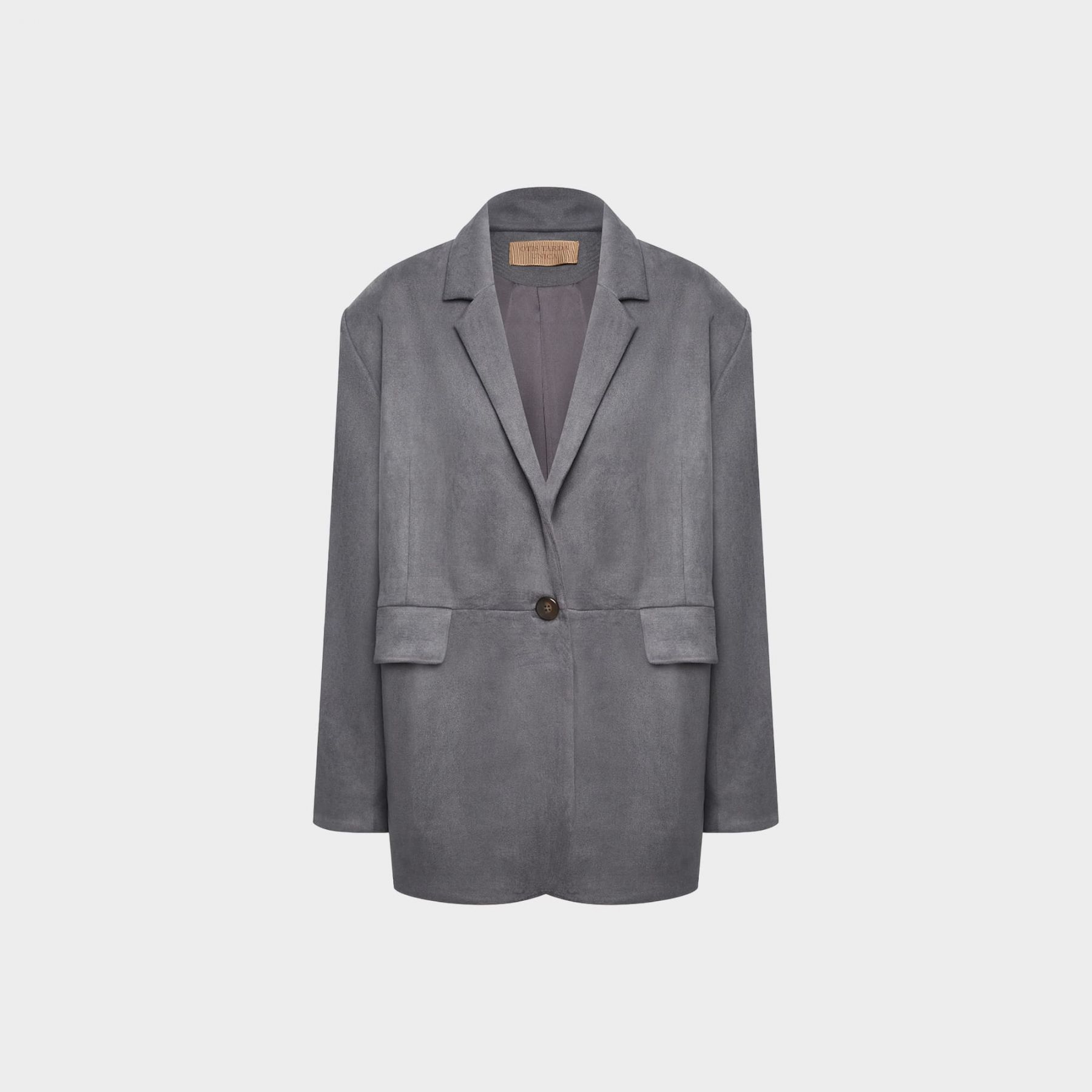 Однобортный жакет свободного силуэта с мягко спущенной линией плеча — вещь, которая держит форму и выглядит аккуратно, при этом ощущается комфортно в носке. Замшевая фактура дарит приятные тактильные ощущения, а трикотажная основа не сковывает движения. Жакет легко подстраивается под разные сценарии: с кроссовками и джинсами — расслабленный городской образ, с каблуком и выразительными аксессуарами — более вечерняя подача. Всё решают детали и обувь.